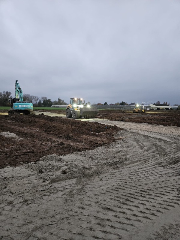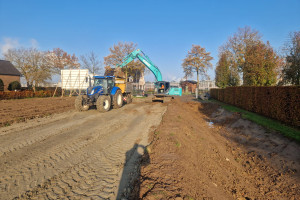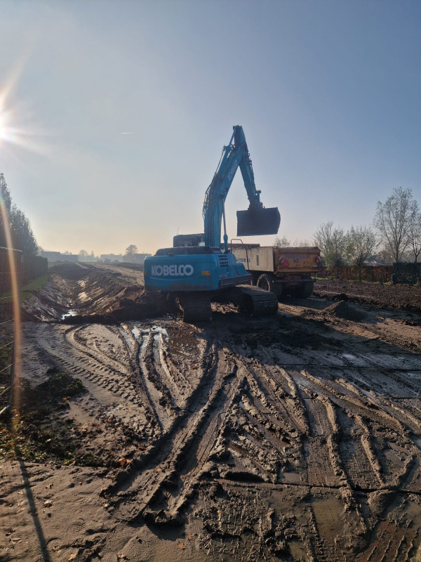 In opdracht van Reuvers Ontwikkeling en Bouw zijn wij momenteel bezig met het bouwrijp maken van de nieuwbouwwijk Hof van Poederoijen in het dorp Poederoijen, dat deel uitmaakt van de gemeente Zaltbommel. In een latere fase gaan wij het gebied ook woonrijp maken. Bijgaand enkele foto's van dit mooie project.