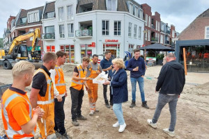 Wethouder Sint-Michielsgestel deelt worstenbroodjes uit aan onze medewerkers op centrumplan St-Michi